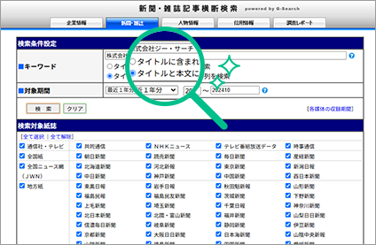 G-Searchデータベースサービスでは、全国紙・地方紙・業界紙・経済誌など約120紙誌の新聞・雑誌記事コンテンツを収録。